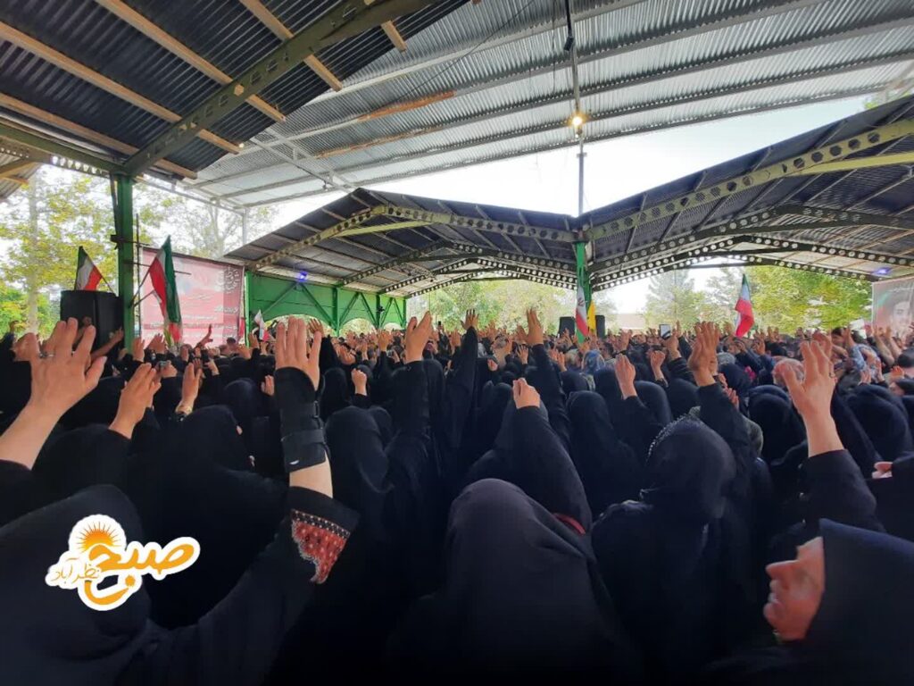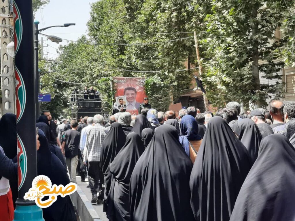 مردم با سر دادن شعارهای «مرگ بر آمریکا» و «مرگ بر اسرائیل» و همچنین «لبیک یا خامنهای»، شهید عزیز را بدرقه کردند و ارادت و محبت خود را به او و آرمانهایش نشان دادند.